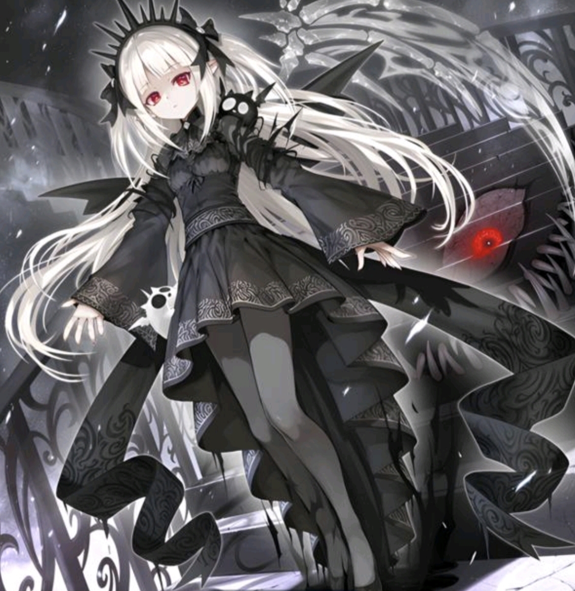 她留着白色的齐刘海长发,发丝柔顺地垂落在肩头,更衬得那张圆脸精致可爱。然而,她口中吐出的话语却与这甜美的外表截然不同,带着一种高高在上的戏谑与诱惑。